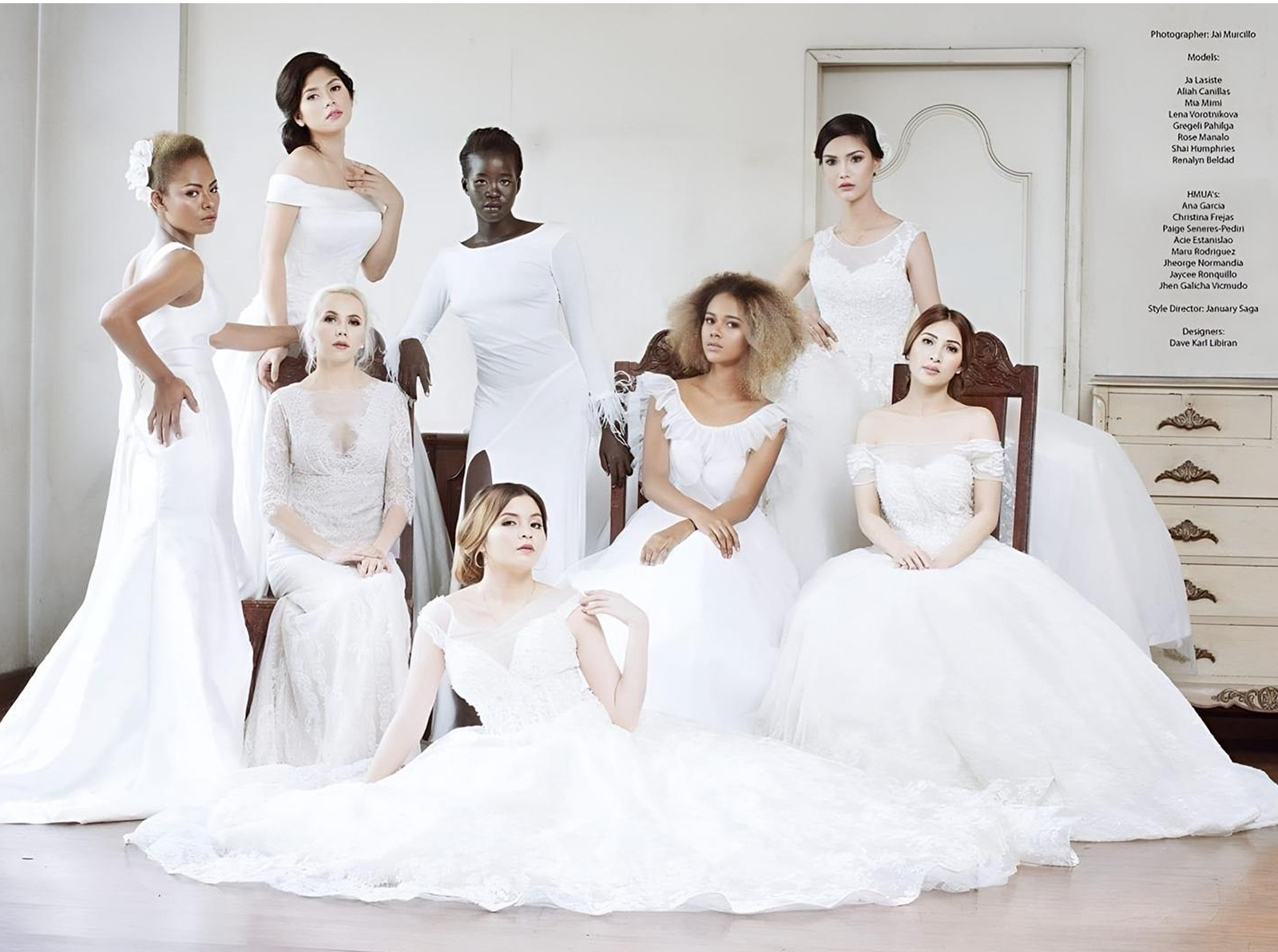 Jada Arellano with models in Dave Karl Libiran gowns, photographed by Jai Murcillo. Styling by January Saga Abad, HMUA team including Ana Garcia and Christina Frejas.